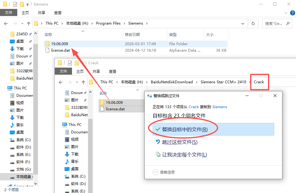 15、将【Crack】文件下的文件复制至软件安装位置中的【Siemens】文件夹下,点击【替换目标中的文件】。