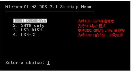 (3)如果无法识别USB磁盘或Bad Block错误,就只能选择默认选项“IDE / SATA”了。