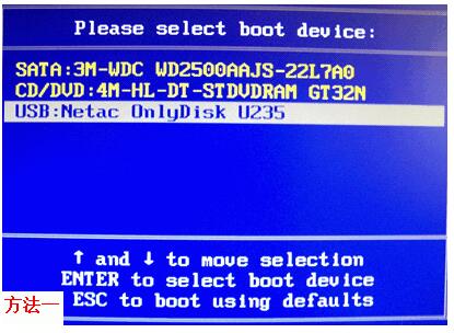 只要用方向键选择以“USB:”开头的那一项回车即可引导。(有的电脑必须选择以“HDD:”开头的选项后再选择U盘)