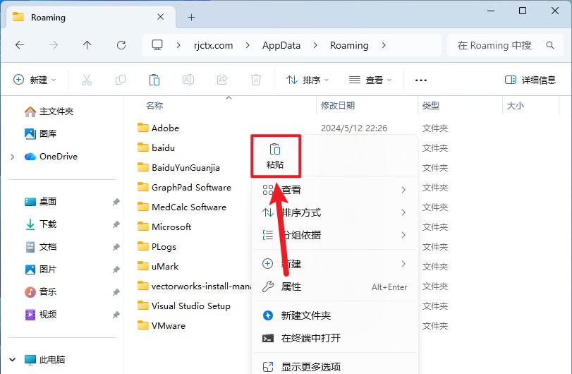 15、鼠标右击空白处选择【粘贴】。