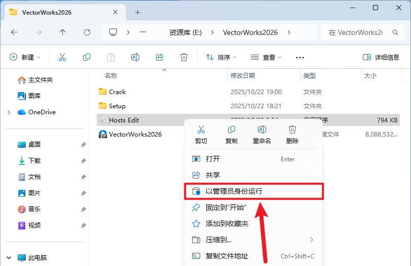 1、鼠标右击【Hosts Edit.exe】选择【以管理员身份运行】。