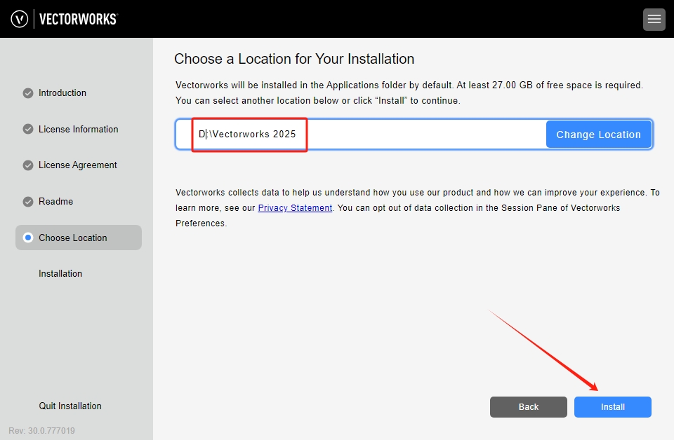 11、软件安装位置更改,直接在路径上就可以更改(注意:更改路径不能带有中文或特殊符号),然后点击Install开始安装。