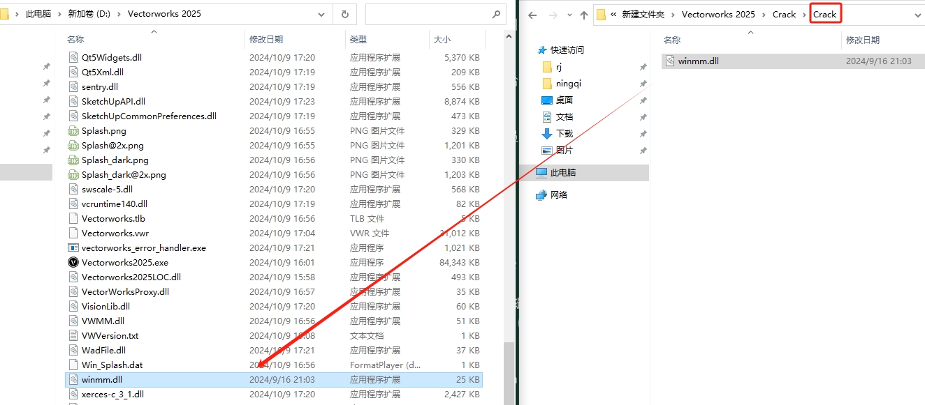 15、打开Crack-Crack文件夹里面的winmm.dll复制到刚才打开的安装目录位置下。