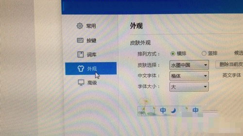 4、打开输入法设置窗口后,点击左侧列的“外观”。
