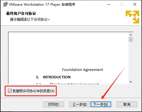 4、勾选协议,点击下一步。