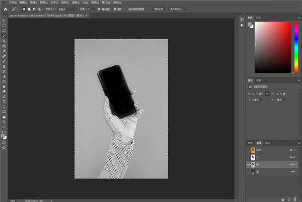 虽然红色通道和绿色通道并没有很大的差别,但是绿色通道会更日常一点。用鼠标点击先入绿色通道,按CRTL+L色阶处理。经过这一个步骤之后,图片的色彩反差感会更加强烈。然后,我们将需要清除的地方用画笔工具把它涂黑。在将画笔的颜色改成白色,把我们想要保留的部分全部涂上白色。