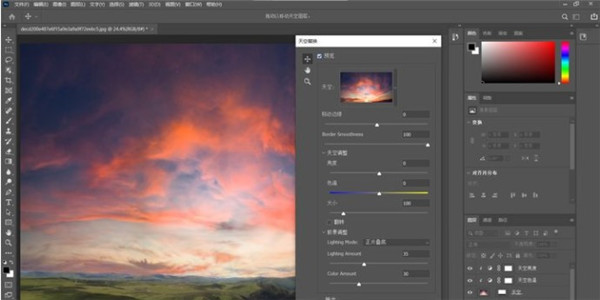 4、当打开这个功能时,系统会自动替换天空,而功能界面上也可以针对移动边缘及天空的“亮度、色温”等进行手动调整。根据自己喜爱调整就可以了。