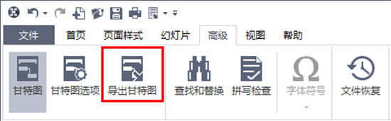 点击:高级菜单——导出甘特图,可以将甘特图导出为PDF格式的文件。