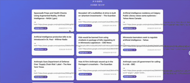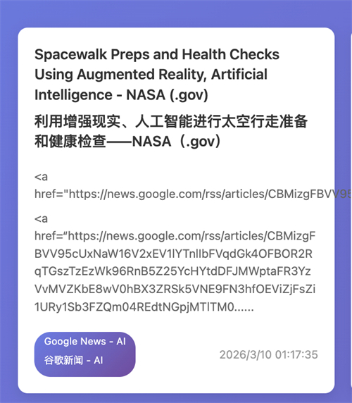 测试:「每隔五分钟给我发送10条全球最新的AI资讯。」