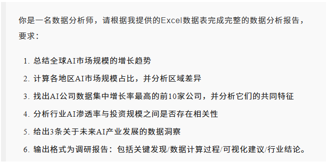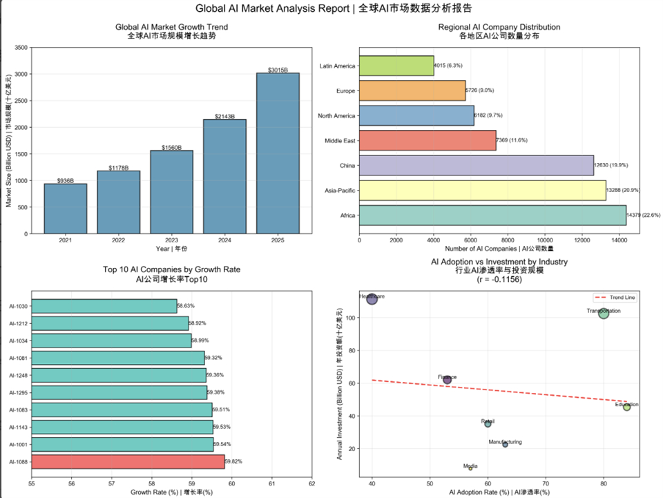 这次运行的比较久,大概等了10—15分钟,不过功夫不负有心人,最终还是做出了一份全球AI市场数据分析报告图——