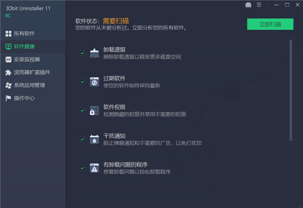 检测到其他卸载程序的卸载操作时通知我:收到此通知后,您可以使用IObit卸载程序的强大扫描功能查找并删除程序残留。