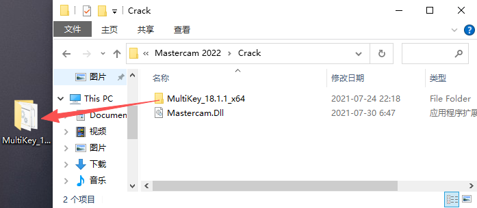 17、接着将【Crack】文件夹下的【MultiKey_18.1.1_x64】文件夹拖动到电脑桌面。