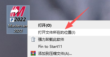 15、在桌面鼠标右击【Mastercam 2022】图标,选择【打开文件所在的位置】。