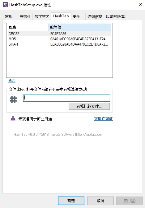 4、HashTab不仅可以计算文件的哈希值,另外还可以比较文件的哈希值。