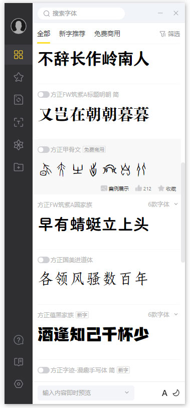 通过搜索、筛选、预览等字体查找功能,快速在方正字库客户端上找到需要的字体。