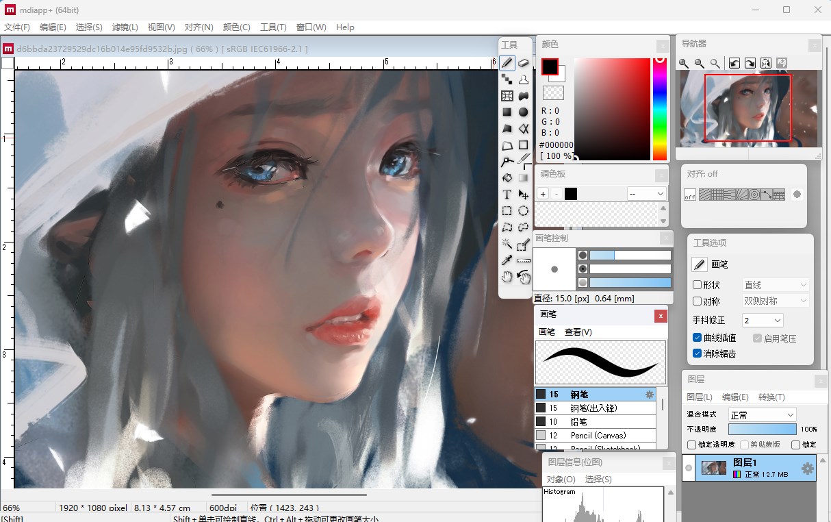 1、支持数位板的画笔平滑处理(手抖修正)