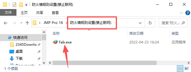 12、双击运行【防火墙规则设置(禁止联网)】文件夹下的【Fab.exe】补丁工具。