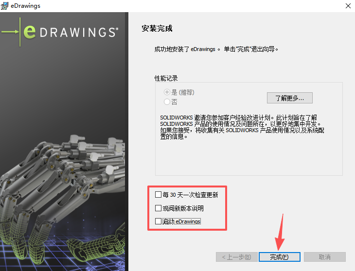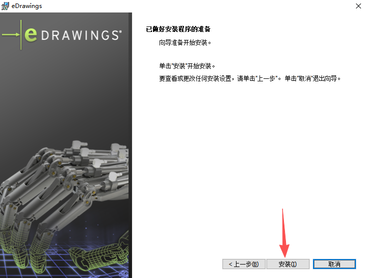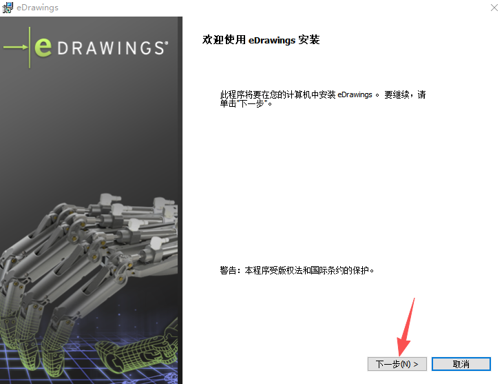 1、双击运行【eDrawingsFullAllX64.exe】安装程序。