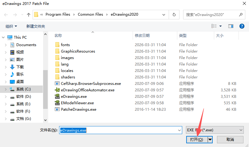 8、将【PatcheDrawings.exe】激活补丁复制至软件安装目录中。