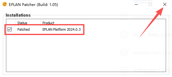 13、勾选【Patched】,点击右上角的【X】关闭窗口。