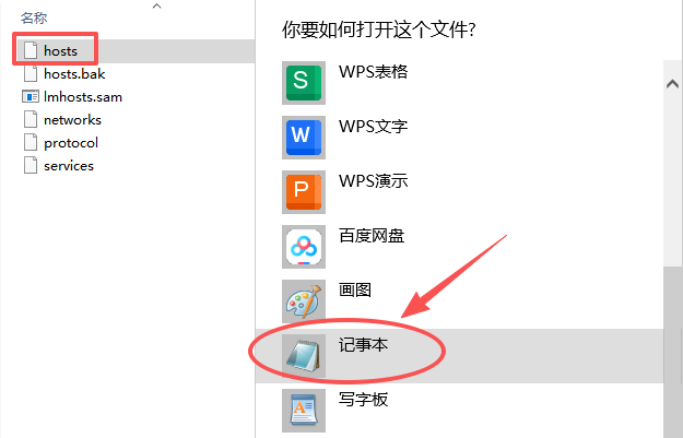 2、以记事本方式打开【hosts】文件。