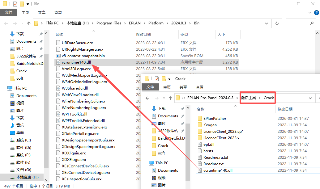 11、将【激活工具-Crack】文件夹下的【vcruntime140.dll】复制至软件安装目录中。