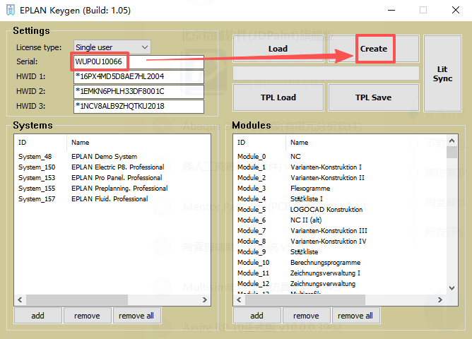 17、在Serial栏目填写:【WUP0U10066】,点击【Create】。