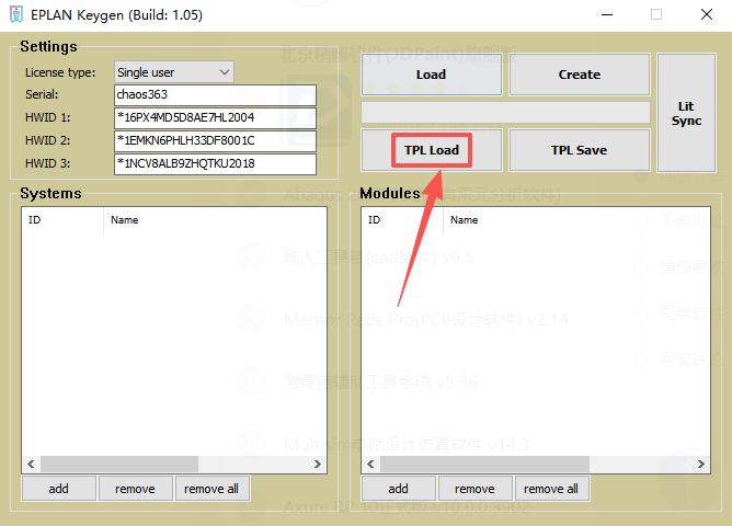15、点击【TPL load】。