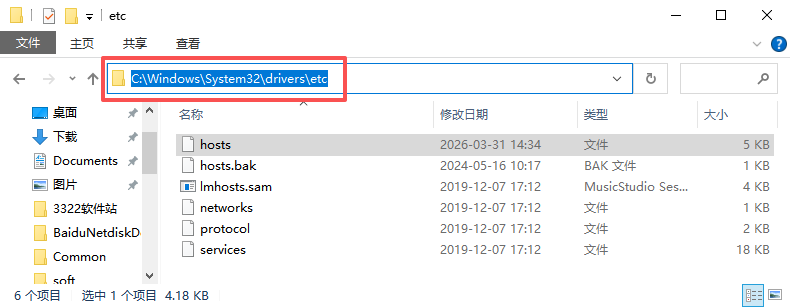1、打开C盘路径地址【C:\Windows\System32\drivers\etc\】。