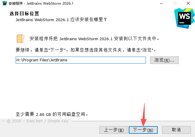2、可更改软件安装位置(路径不能含有中文字符),点击【下一步】。