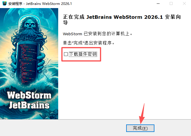 7、取消勾选【下载插件密钥】,点击【完成】。