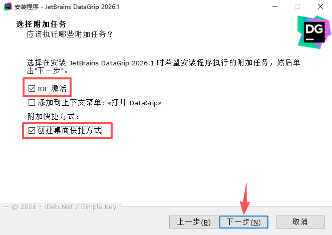4、分别勾选【IDE激活】与【创建桌面快捷方式】,点击【下一步】。