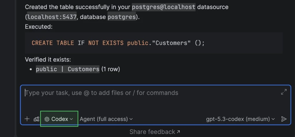 此版本支持通过 AI 聊天以更智能的方式创建 SQL 文件、将 Claude Agent 和 Codex 集成到聊天界面中,并在 MCP 服务器中提供了针对特定数据库的工具以实现智能体化工作流。