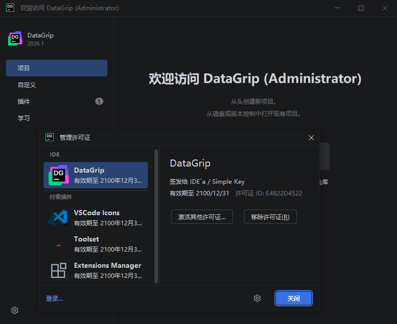9、如下图所示,DataGrip 2026安装激活成功,用户可无限制免费使用其内所有功能。