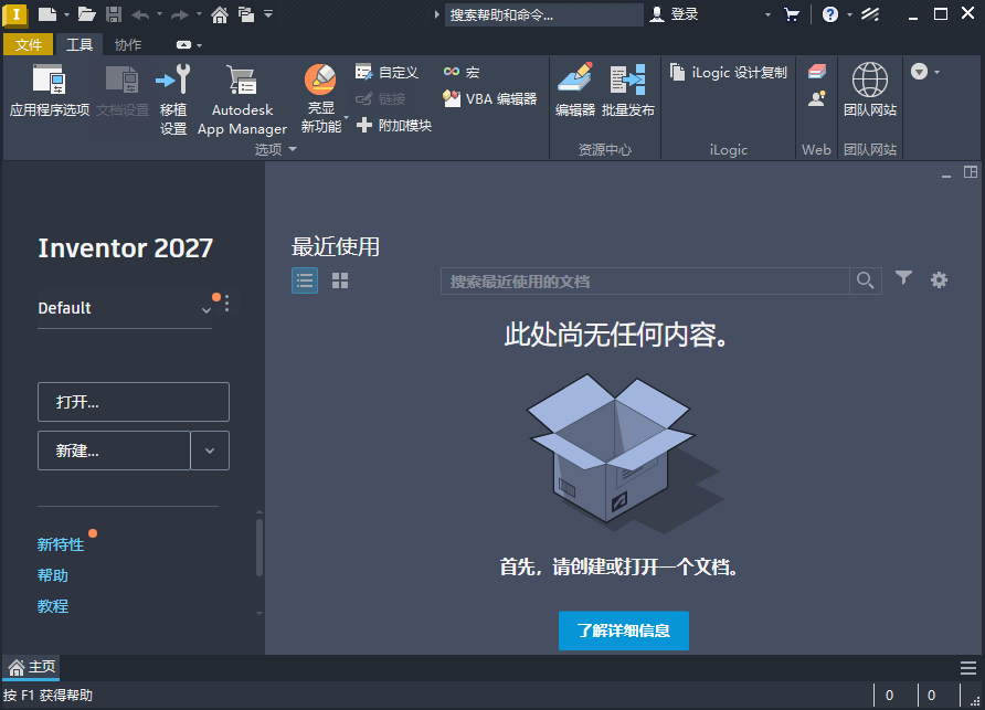 12、Inventor Pro 2027安装激活完毕,运行界面如下。