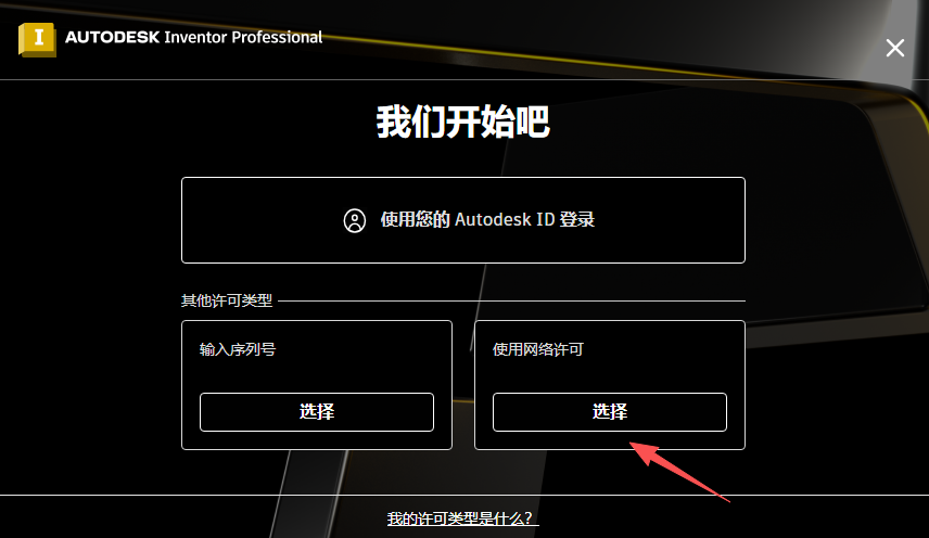 10、启动【Inventor Pro 2027】,选择【使用网络许可】,输入【127.0.0.1】。