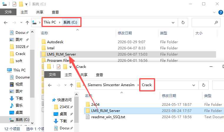 22、接着将【Crack-LMS_RLM_Server】文件夹复制至C盘根目录下。
