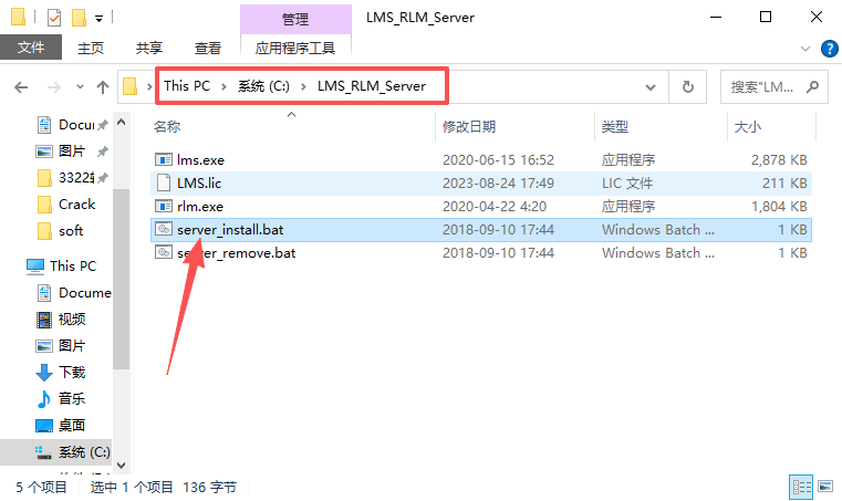 23、双击运行C盘【LMS_RLM_Server】文件夹下的【server_install.bat】。
