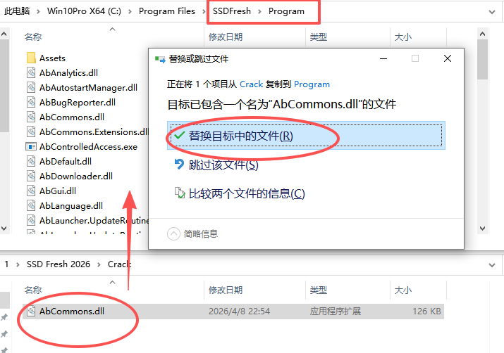 6、安装结束后,找到软件安装目录,默认位置为【C:\Program Files\SSDFresh\Program】,把crack文件夹里面的dll文件复制替换里面即可;