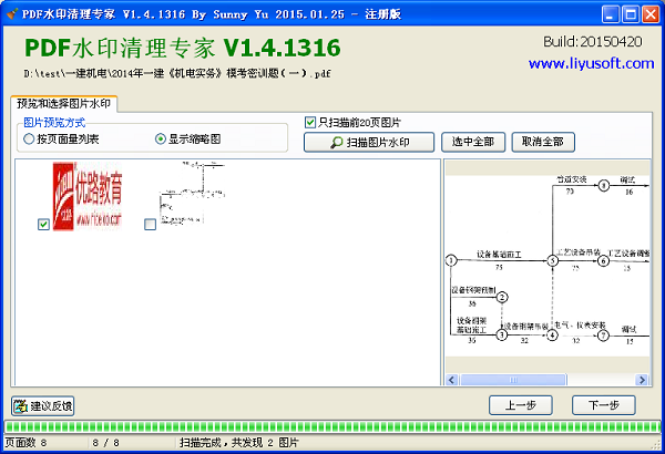 步骤3: 点击“扫描图片水印”,扫描PDF文件中所有可能的图片水印