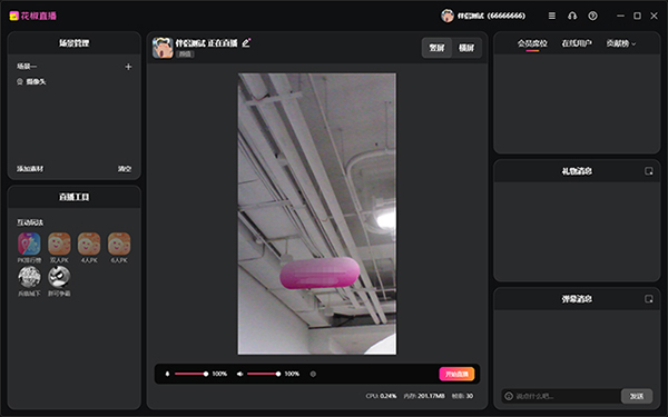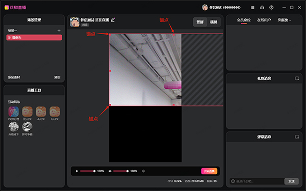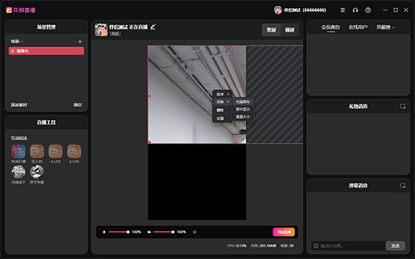 视频画面调整后如下,没有使用声卡的用户到此已经完成所以开播准备,可以点击“开始直播按钮”开播了(使用声卡的用户需要接着往下进行下一步操作)