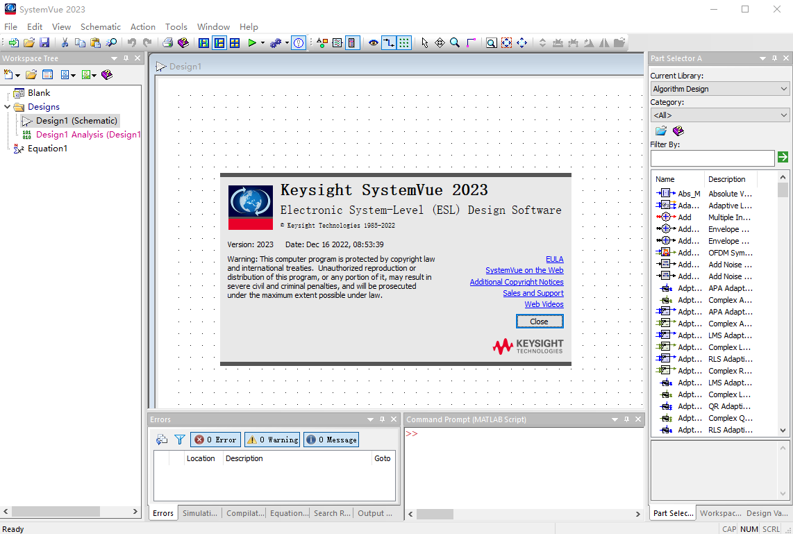 18、启动Keysight SystemVue 2023,此时已安装激活完毕,运行界面如下。