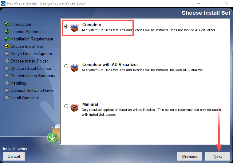 5、选择【Complete】,点击【Next】。