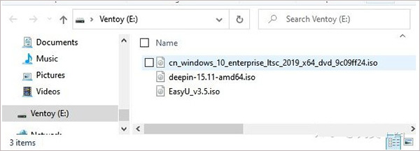 4、操作极其简便和傻瓜化,任何人都可以轻松上手。当把Ventoy安装到u盘中后,如果想要添加iso镜像,那么只需要像复制文件一样,把一个或者多个操作系统iso镜像文件复制到u盘中后就可以开始安装系统了,剩余的u盘空间平时也可以用来存放其他文件,因为安装Ventoy的u盘和普通u盘看不出任何差别。