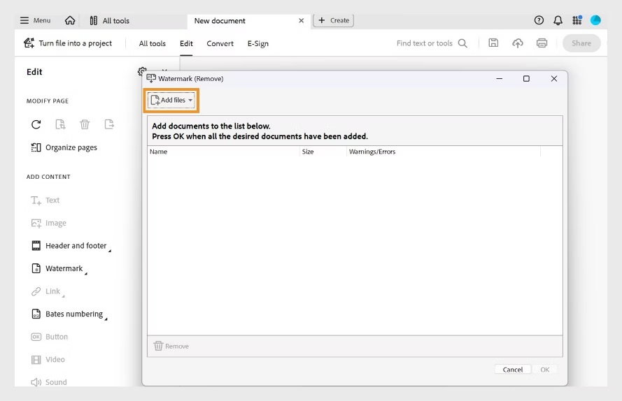 2、在编辑窗格中,选择水印 > 移除。