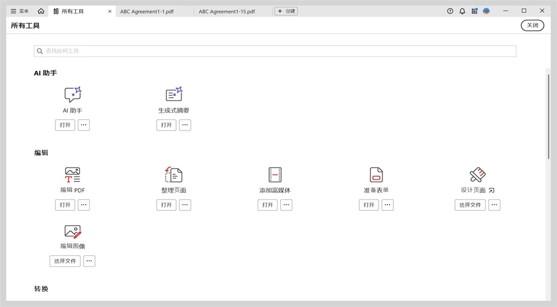 ●“所有工具”视图:浏览 Acrobat 中所有可用工具的列表。