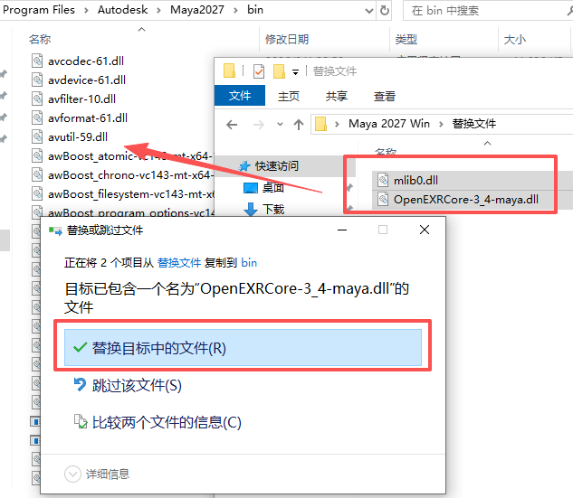 9、将【替换文件】文件夹下的补丁复制至软件安装目录中,点击【替换目标中的文件】。