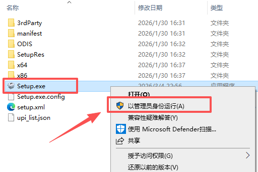 1、鼠标右击【Setup.exe】选择【以管理员身份运行】。