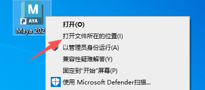 8、鼠标右击桌面【Maya 2027】图标选择【打开文件所在的位置】。
