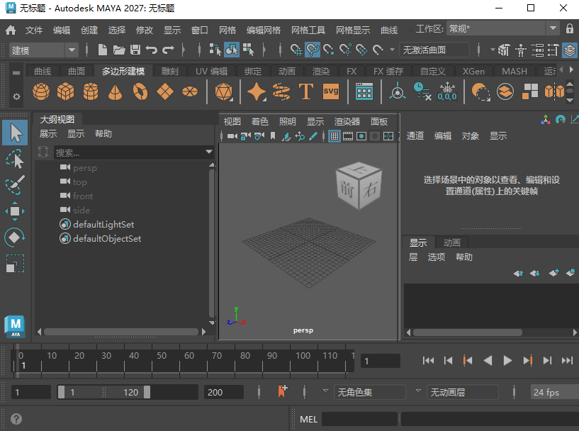11、进入Maya 2027主界面,运行界面如下,用户可无限制免费使用其内所有功能。